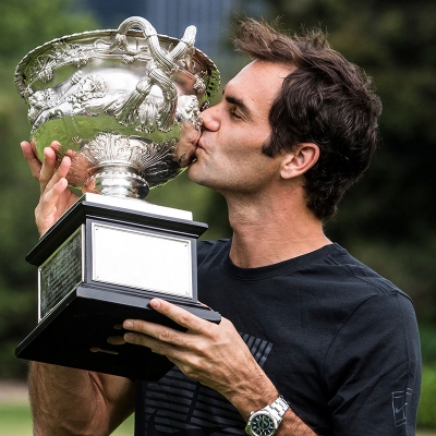 Roger Federer celebrates his 20th Grand Slam title, Government House, 29 January 2018. Photo: Ben Solomon/Tennis Australia