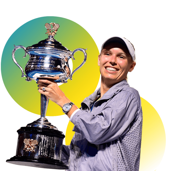 Caroline Wozniacki celebrates winning her maiden Grand Slam singles title, Royal Botanic Gardens, 28 January 2018. Photo: Ben Solomon/Tennis Australia