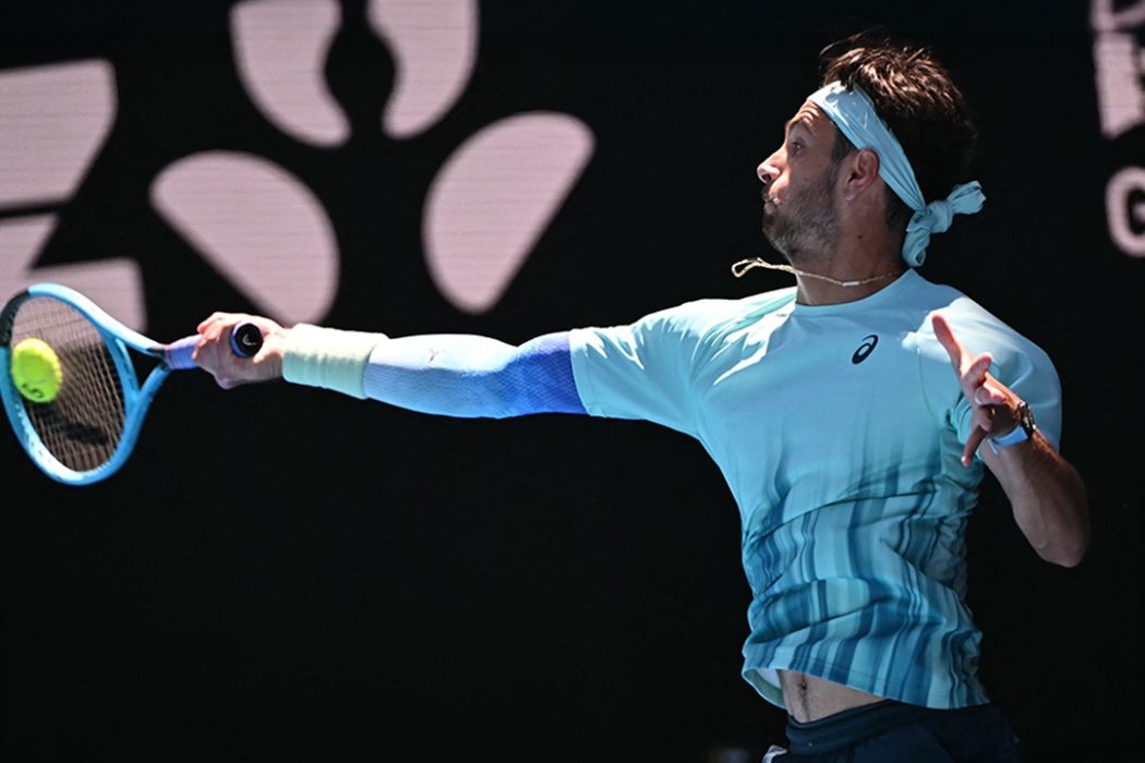 Sinner’s improved serve motion stood out during just over two hours at Margaret Court Arena, with the Italian smacking 19 aces and finding the court with over 70 per cent of his first deliveries.
