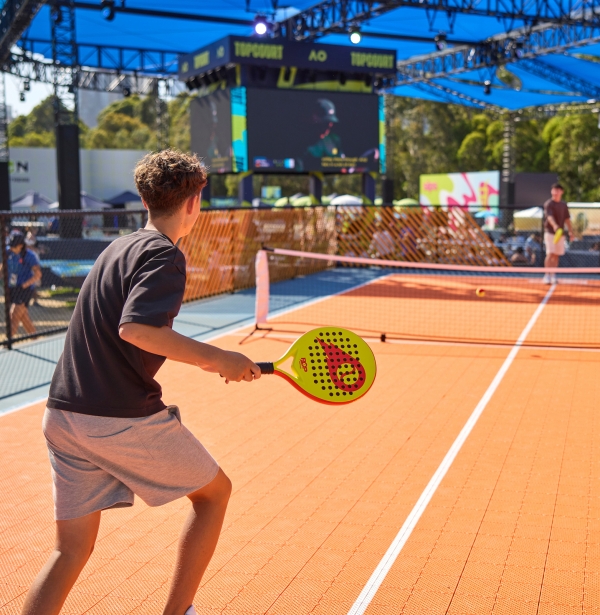 In an exclusive opportunity to play on an official AO court, pick up the racquet and play some tennis with the family, or receive special tips & tricks from friendly Hot Shots Tennis coaches to improve your game.