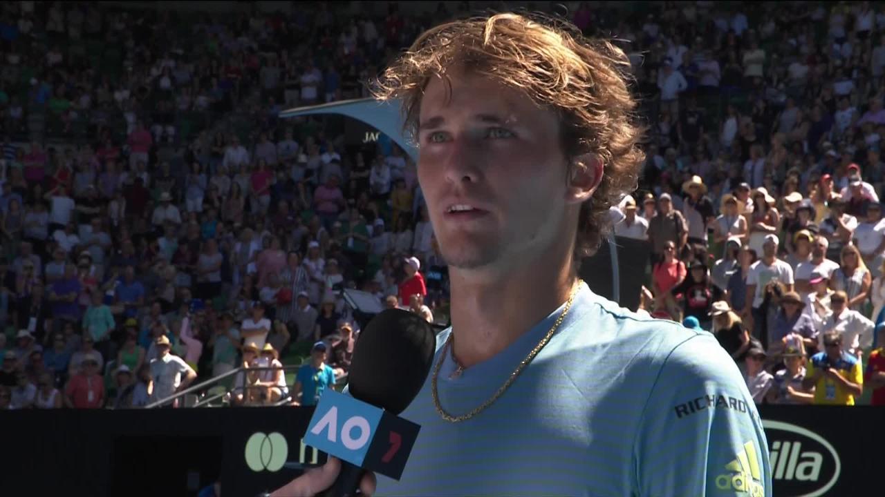 Alexander Zverev's on court interview following his victory over Thomas Fabiano in round one of Australian Open 2018.