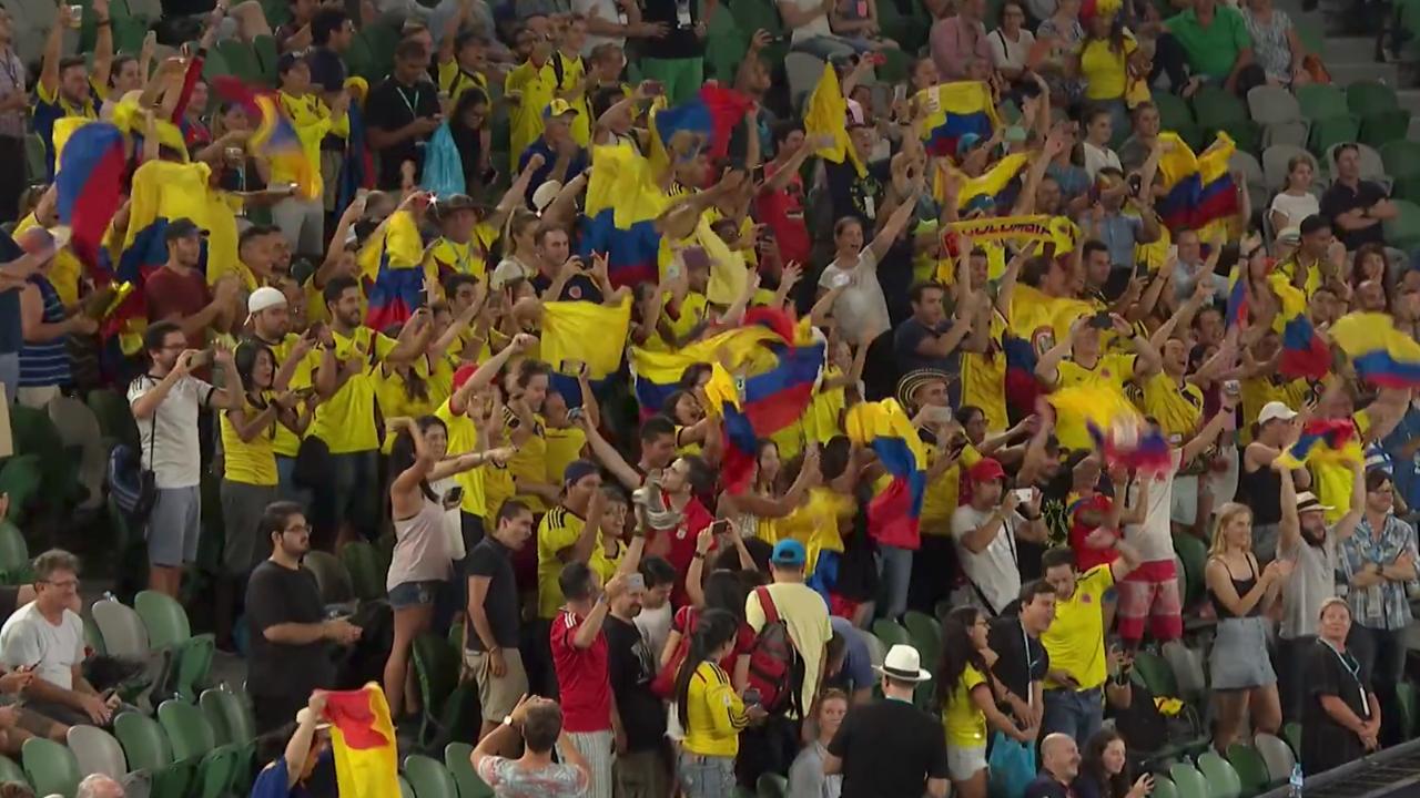 The reaction for Colombians Juan Sebastian Cabal and Robert Farah before the Men's Doubles final.