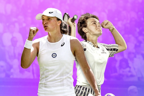 Iga Swiatek (L) equalled the 37-match winning streak of Martina Hingis (R) by winning her second-round match at Wimbledon in 2022.