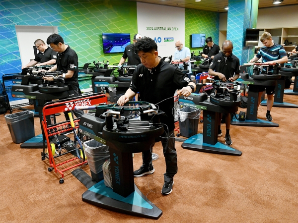 While the stars battle it out on court at Rod Laver Arena, unseen, deep in the corridors below, the stringers from the Yonex Stringing Team work their magic to support the stars in their quest for Grand Slam glory.